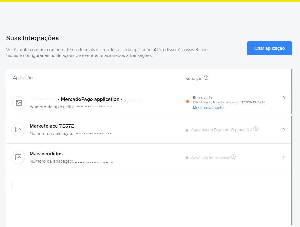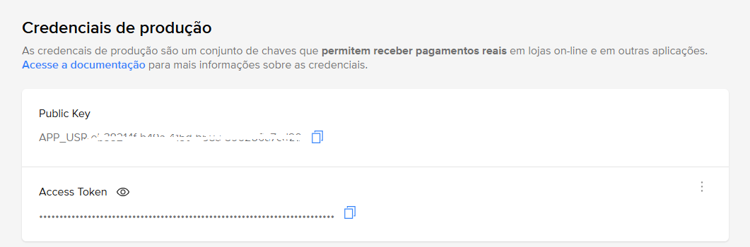 2.2.3.1. "Credenciais de produção": São destinadas para lojas já ativas e capturando pagamentos