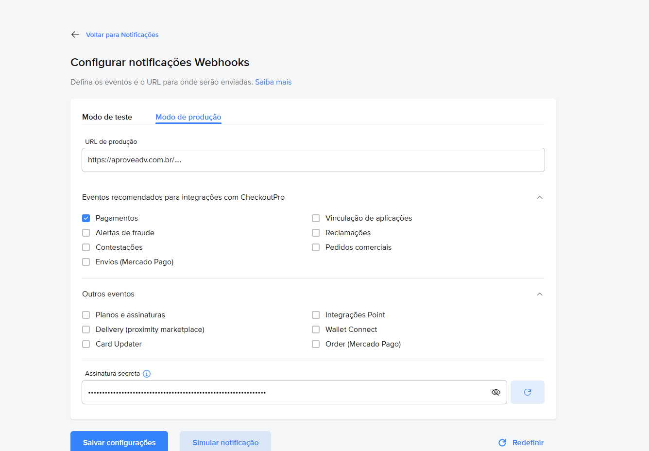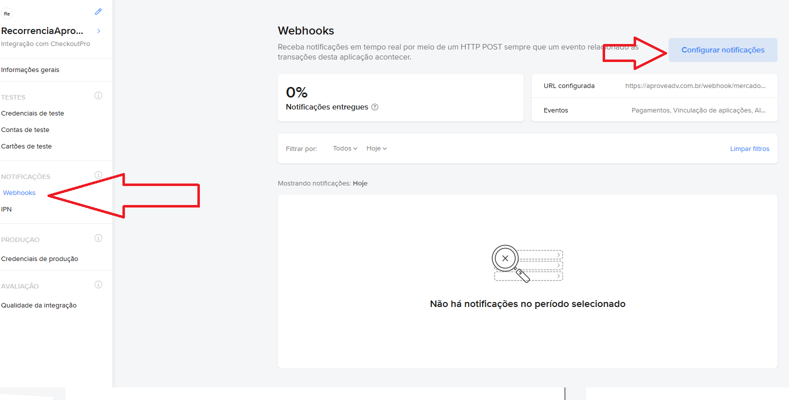 2.3. Configurando WebHook para retorno automático das situações de pagamento: